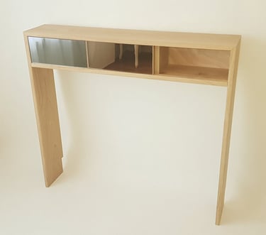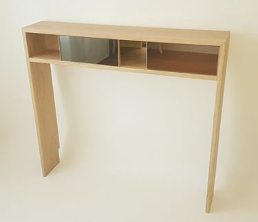 Véritable exercice de style minimaliste, cette console en chêne clair redéfinit l'entrée ou le salon par sa structure aérienne en "U" inversé.