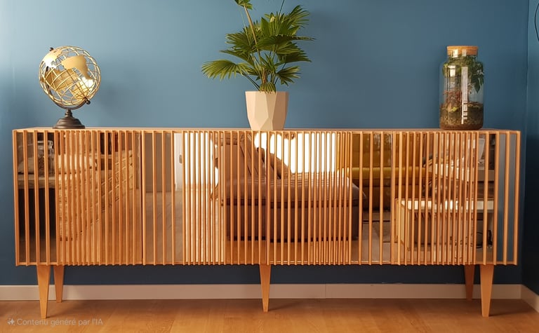 Jeu de Lumière : Selon votre angle de vue, le meuble semble s'animer, changeant de couleur et d'éclat.